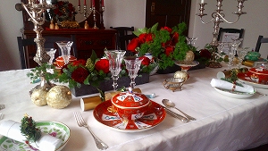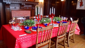 お屋敷ごとにクリスマスのテーブルコーディネートがされていて