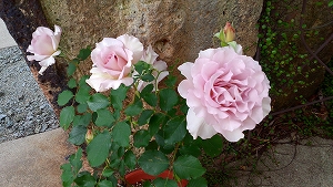 木林森カフェのテラスでは薔薇(フォルム)が開花
