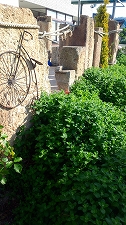 カフェのテラス ミントがモサモサと生育中