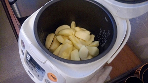 さて、炊飯器にリンゴを入れてスイッチを入れます!(ぼけたのではありませんよ~)