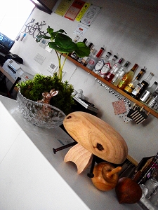 カウンターの上に木ー坊(きーぼー)と一緒に?!