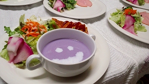紫芋のポタージュスープとカボチャのキッシュにしてみました~