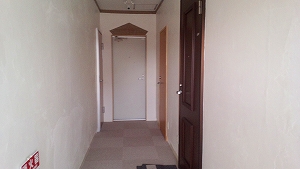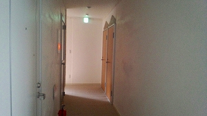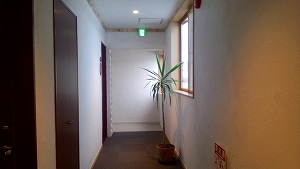 1階の廊下、お部屋は、右手前、廊下の突き当り、左側のシングル3部屋です
