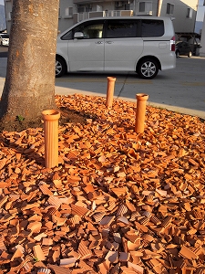 ツレが、田んぼの暗きょに使う陶管の不良品をいただいて、割ったり、立てたり