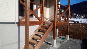 さて、木林森ファミリアは玄関の階段に手すりがついて完成形です