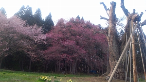 釜ノ越桜(手前)にはびっくり、ほとんど枝がないわ~