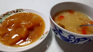 夕食は鶏雑炊と大根のひき肉そぼろ