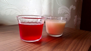 自家製のしそジュースと通販で買った米麹の甘酒(紅白でめでたい~^0^)