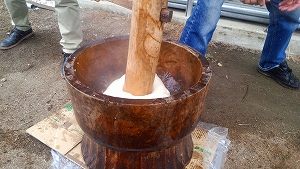 お餅つきをして、納豆、雑煮、あんこにきな粉でいただきます