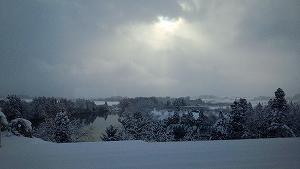 雪の晴れ間にちょっとだけ太陽の光が射してきてすごく幻想的な風景でした