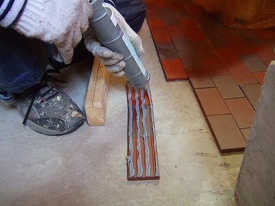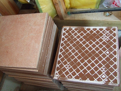 トイレの前までの小さいサイズのタイル張りがほぼ終わり