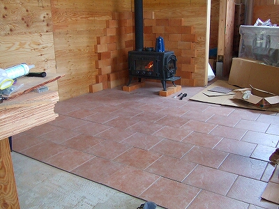 5列ほど張ったところで、これでストーブが置けるぞ~