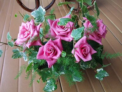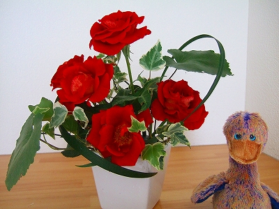 昨日買って来たバラで早速アレンジしてみました。