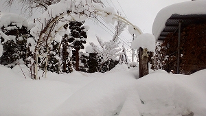 こちらとそんなに変わらないような雪の積もった庭の画像を