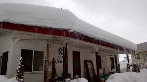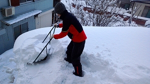 息子③は車庫がつぶれそうということで、へっぴり腰で雪下ろし