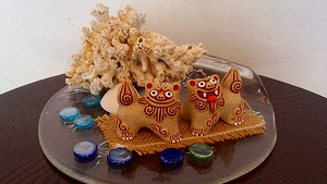 玄関のディスプレイ、シーサーくんも来年までさようならですね