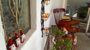 入口に去年まで使っていたクリスマスグッズを置いています