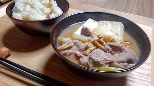 新米の炊き込みご飯と猪汁