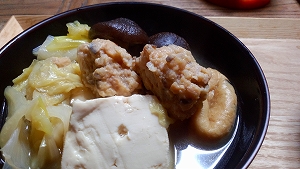 刻んで鶏ひき肉と団子にして鍋で!