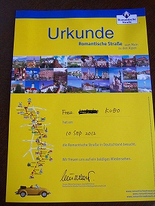 ロマンチック街道通過証明書