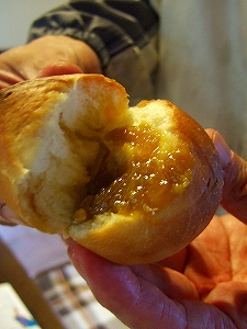 焼きたてにルバーブのジャムをのっけて
