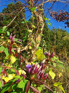 草に埋もれてリンドウが咲いていた