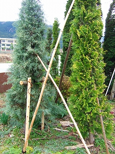 大杉の森の中に立つ塔を見ていると