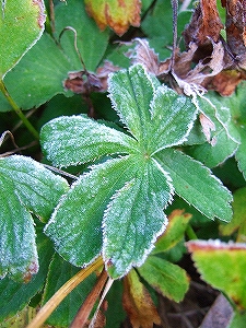 ↑ アストランティアのはっぱに霜が・・・