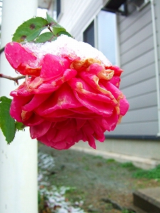 最後のバラにも雪が乗っかって・・・