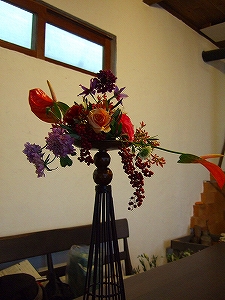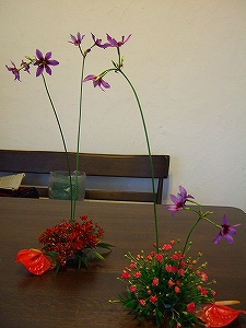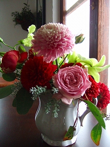 自分で花材を選ぶ時は絶対ない組み合わせだわ
