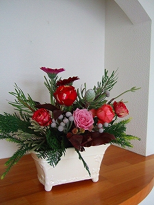 赤いバラとダークなガーベラ