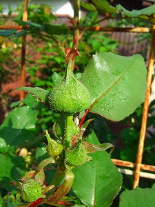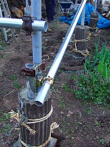 ↓ つるバラをはわせているのは