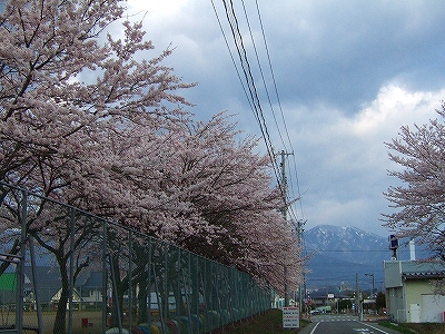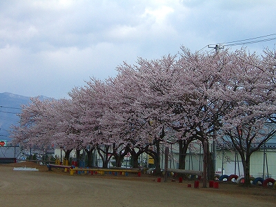 クレッシュの道むかいの小学校の桜が満開になりました。