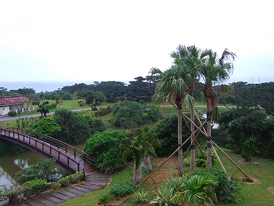 一泊目のホテルの窓からやしの木が風雨に大きくゆさぶられているのを見て